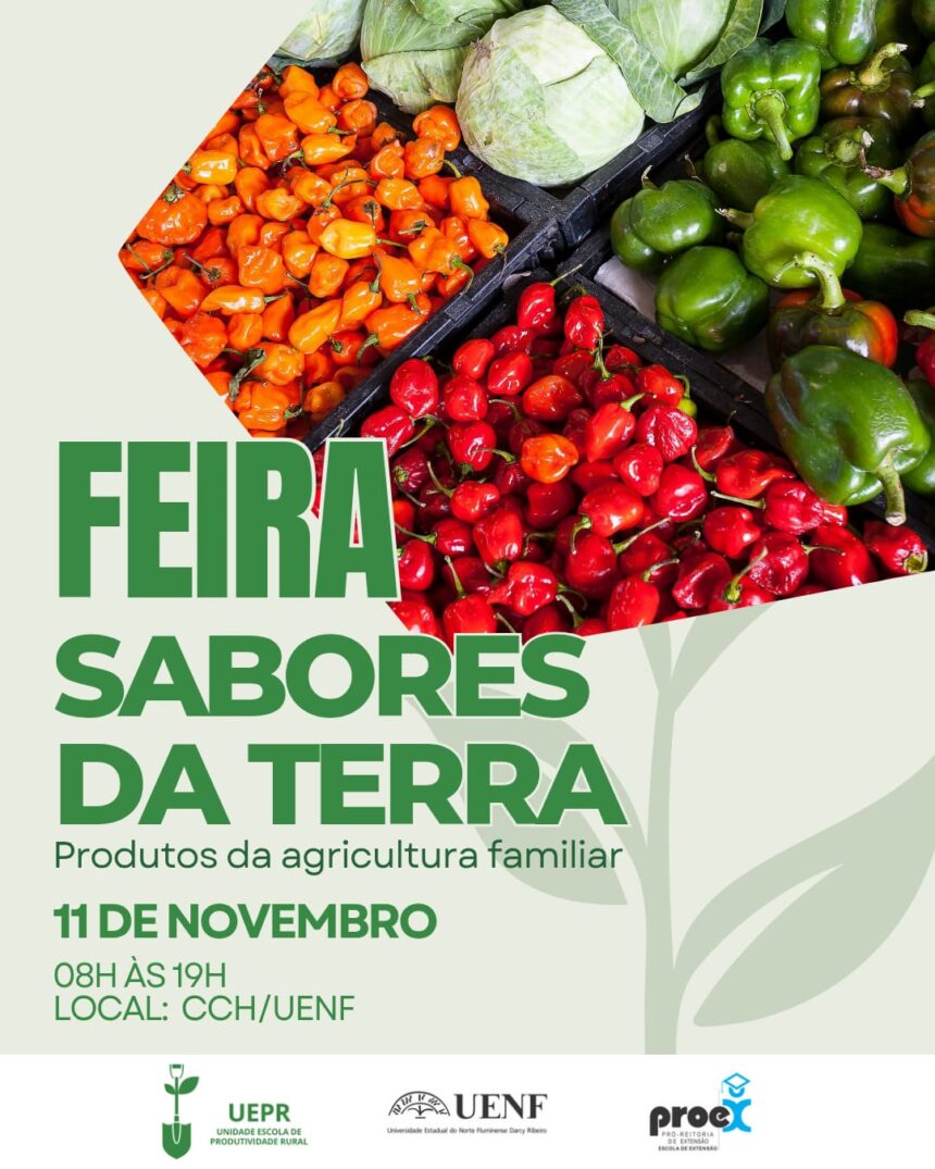 Será realizada em 11/11/25, das 8h às 19h, no Centro de Ciências do Homem da UENF (CCH), a Feira Agroecológica Sabores da Terra, evento que tem por objetivo fortalecer a geração de renda das famílias rurais presentes no assentamentos de Campos dos Goytacazes.