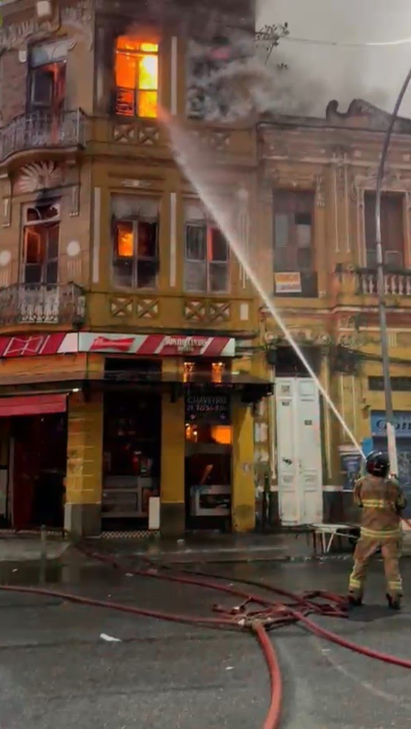 Segundo o porta-voz do Corpo de Bombeiros, major Fábio Contreiras, o fogo começou no bar Sonho Lindo, que fica no térreo do imóvel e, posteriormente, subiu para andares superiores e também atingiu a farmácia Max. Segundo ele, há risco de desabamento, que será avaliado pela Defesa Civil.