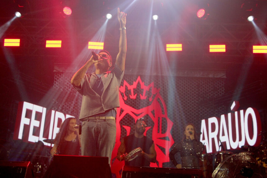 O sucesso “Atrasadinha” abriu o show de Felipe Araújo em grande estilo, na noite deste sábado (10), com o público fazendo a segunda voz com o cantor, que é o primeiro sertanejo presente em Farol de São Tomé. A boa energia do campista fez Felipe Araújo decidir lançar, durante o show, a música “Estranho de Novo”, seu novo trabalho.