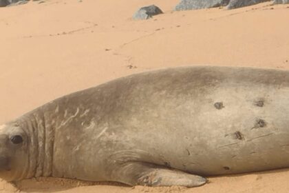 Foca vinda da Patagônia é avistada na Praia do Farol, em Macaé